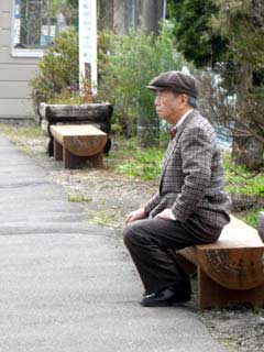 駅前にマイクロバスがとまって賑やかなこえが聞こえます。
