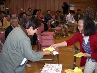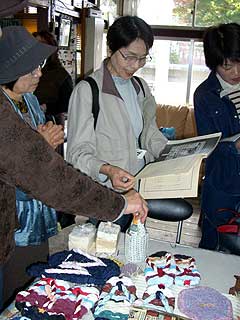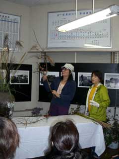 長野市の清掃センターに併設されている「リフレッシュプラザ」で活動されている皆さんです。ここは「ゴミやリサイクルの現状を学習する場であり、リサイクル活動の拠点として、地球環境を考える市民みんなの広場」だそうです。その成果でもある、裂き布を使った織物や草履、廃油石けんなどお持ちくださいました。皆さん、50〜60才代の「団塊世代」の方たち。