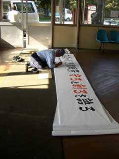 会場の見事な看板を書いてくださったのも、地元のお年寄り。