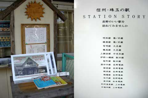 さて、ホームを使っての写真展は終了しましたが、駅待合室に展示した『信州珠玉の駅』の写真20点は片付けるのは<もったいない>と、杉崎氏にお願いして11月の連休が終わるまでお借りしています。まだ、ご覧になっていない方、興味のあるかた、どうぞお出かけ下さい。