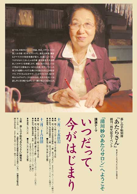 「あたらさん」古典シリーズでもお馴染み、85才にしてますます好奇心旺盛な売れっ子、「わたし、いま旬なのよ」とおっしゃる清川 妙先生です。
